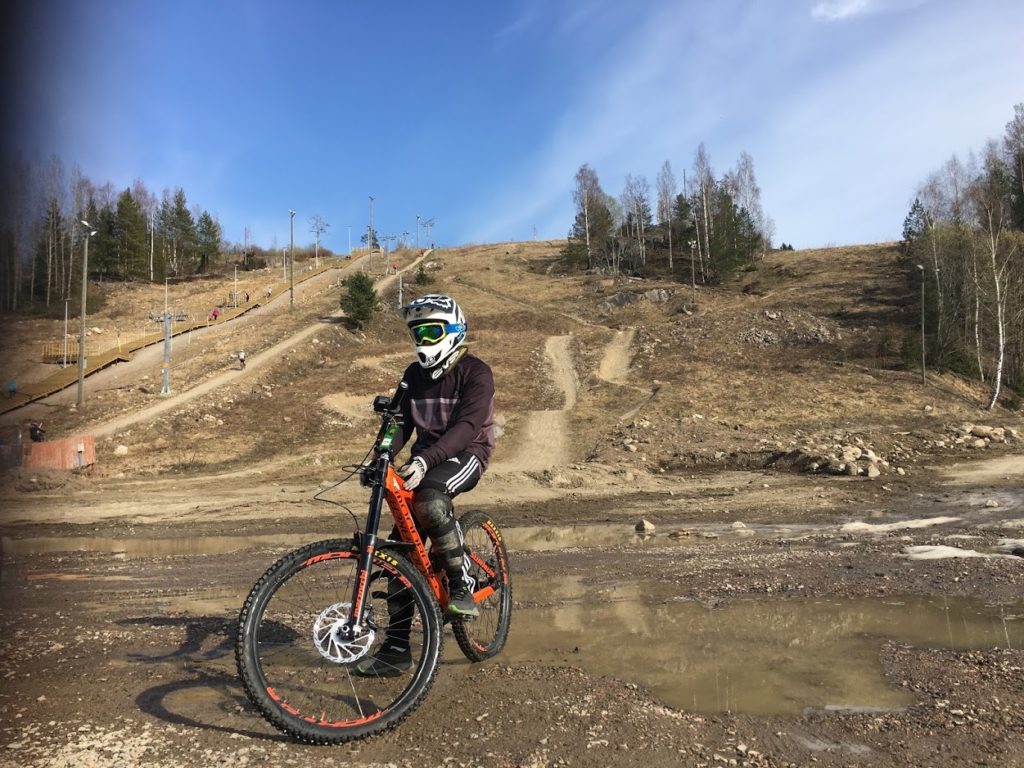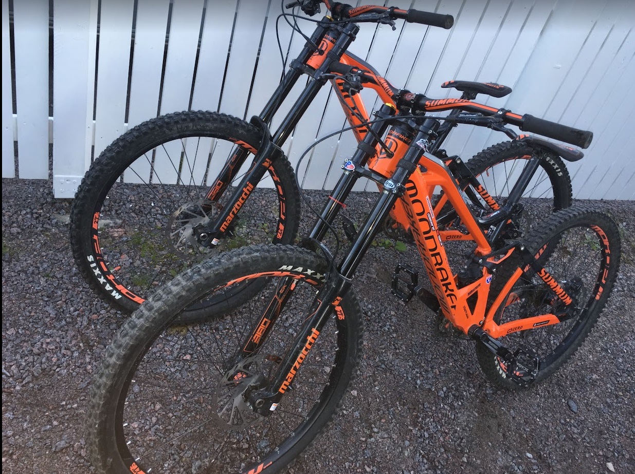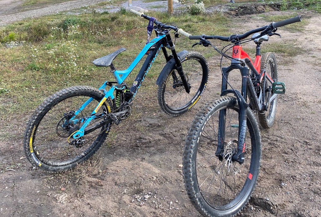 Lisäksi tarvitaan tietysti alamäkipyörä, joka on täysjousitettu, kestävä ja kevyt. Alamäkipyörän voi vuokrata