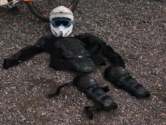 Alamäkipyöräilyyn tarvitaan erityisiä varusteita, jotka suojaavat kuskia ja pyörää.